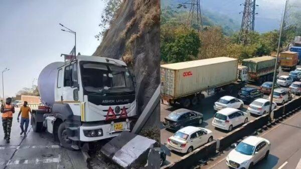 Lonavala : मुंबई-पुणे एक्सप्रेस वेवर खंडाळा घाटातील आडोशी बोगद्याच्या प्रवेशद्वारावर ३ फेब्रुवारीला प्रोपलीन या ज्वलनशील गॅसची वाहतूक करणाऱ्या टॅंकरच्या अपघातानंतर उद्भवलेल्या अभूतपूर्व वाहतूक, त्यामुळे झालेल्या समस्यांचे परिणाम, पडसाद अजूनही ताजे असताना आज सकाळी सव्वा दहाच्या सुमारास पुन्हा एकदा टँकरला अपघात झाला आहे. अमृत अंजन पुलाजवळील तीव्र उतार व वळणावर पुन्हा एकदा प्रोपलीन या ज्वलनशील गॅसची वाहतूक करणाऱ्या टँकर चालकाचे गाडीवरील नियंत्रण सुटल्याने टँकरला अपघात झाला. मात्र हा टँकर मार्गालगत असलेल्या डोंगराच्या पायथ्याशी असलेल्या गटारात जाऊन अडकल्याने मोठा अनर्थ टळला आणि सर्वांचा जीव भांड्यात पडला. जर टँकर उलटला असता तर, पुन्हा २० दिवसांपूर्वी झालेल्या अपघाताची पुनरावृत्ती झाली असती.