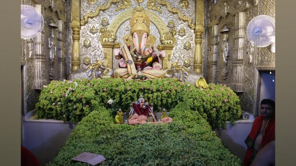 Pune : होळीपौर्णिमेनिमित्त श्रीमंत दगडूशेठ हलवाई गणपती मंदिरातील गाभारा आणि सभामंडप द्राक्षांनी सजविण्यात आला असून २ हजार किलो द्राक्षांची आरास करण्यात आली आहे. तर ही द्राक्षांची आरास पाहण्यास पुणेकरांनी एकच गर्दी केली आहे.