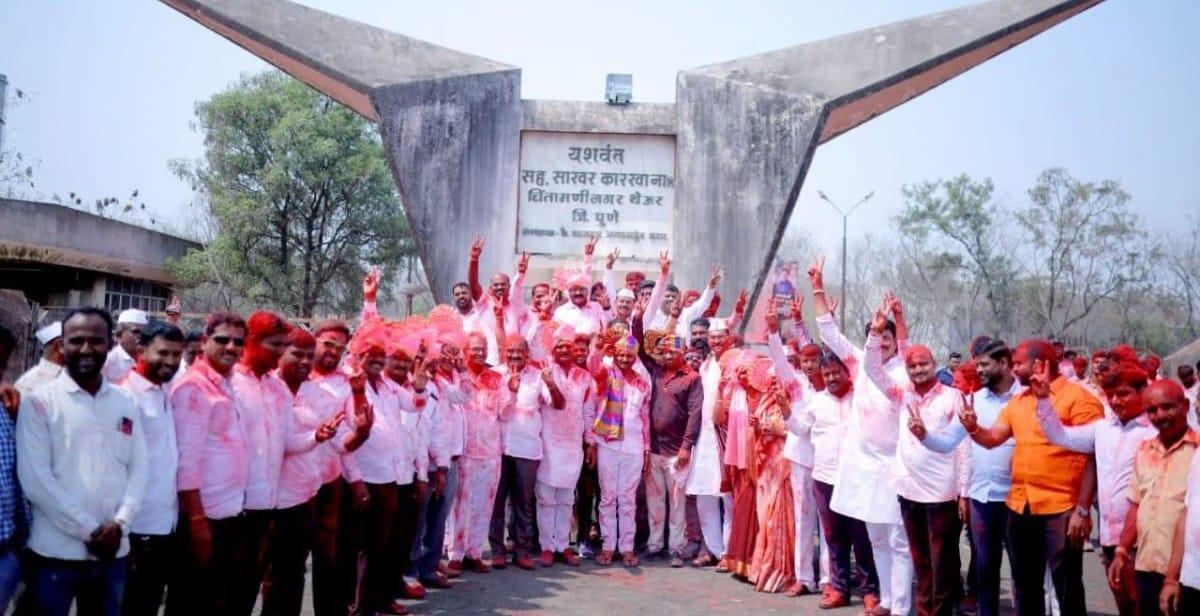 चेअरमन व व्हाईस चेअरमनची निवड झाल्यानंतर कार्यकर्त्यांनी गुलाल उधळून व फटाके फोडून जल्लोष केला. गेली तेरा वर्ष प्रशासकाच्या ताब्यात असलेल्या यशवंत सहकारी साखर कारखान्याच्या संचालक मंडळाची निवडणूक न्यायालयाच्या आदेशानुसार घेण्यात आली.