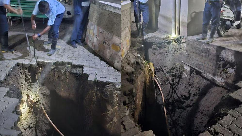 सोसायटीच्या पार्किंग कॉलमलगत जमीन खचल्याने १५ ते २० फूट खोल खड्डा पडला आहे. अचानक जमीन खचल्याने परिसरात भीतीचं वातावरण पसरलं आहे. घटनेची माहिती मिळताच अग्निशमन दलाचे अधिकारी घटनास्थळी दाखल झाल्याची माहिती आहे.