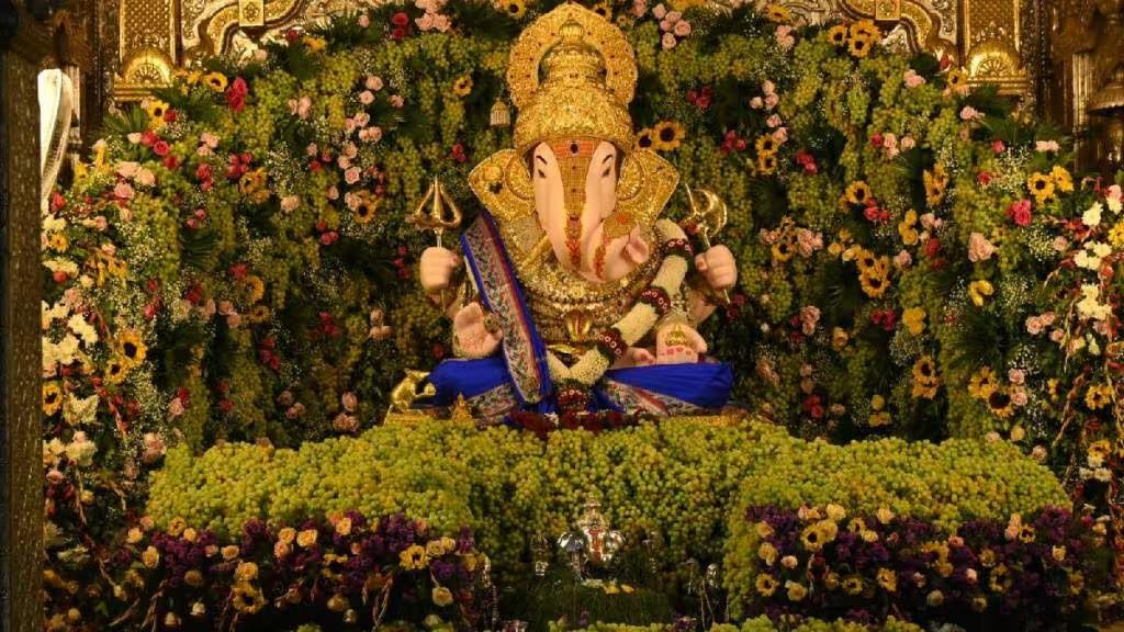 Pune : काळ्या आणि हिरव्या द्राक्षांनी श्रीमंत दगडूशेठ हलवाई गणपती मंदिरातील गाभारा व सभामंडप सजवून द्राक्ष महोत्सव करण्यात आला.श्रीमंत दगडूशेठ हलवाई सार्वजनिक गणपती ट्रस्टतर्फे आयोजित महोत्सवात नाशिक येथील सह्याद्री फार्म कंपनीच्या शेतक-यांनी पिकवलेल्या निर्यातक्षम व रसायनविरहित २ हजार किलो द्राक्षांची आरास करण्यात आली.