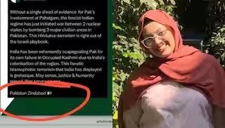 पुण्यातील कोंढवा परिसरातील एका तरूणीने आपल्या सोशल मीडिया पोस्टवर 'पाकिस्तान झिंदाबाद' अशा आशयाची पोस्ट शेअर केली होती. पोस्ट व्हायरल होताच तिच्याविरोधात पोलीस ठाण्यात गुन्हा दाखल करण्यात आला. पोलिसांनी तरूणीला तात्काळ अटक करून न्यायालयात हजर केले. न्यायालयाने तिला पाच दिवसांची पोलीस कोठडी सुनावली असल्याची माहिती समोर आली आहे.