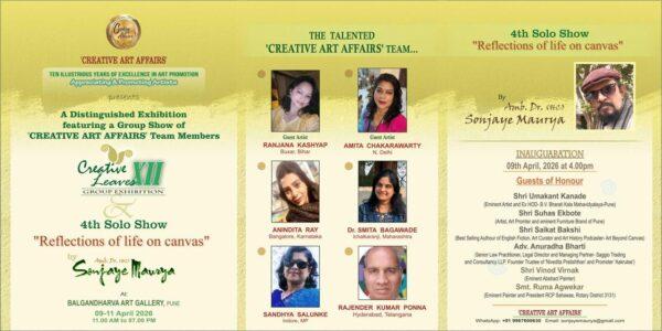 Pune : क्रिएटिव्ह आर्ट अफेअर्स आपल्या चाहत्यांसमोर पुन्हा एकदा कलाक्षेत्रातील नव्या आणि अनुभवी कलाकारांचे प्रदर्शन सादर करत आहे. या वर्षी ‘क्रिएटिव्ह लिव्हज XII’ समूह प्रदर्शन आणि बहुविध प्रतिभा असलेल्या अम्ब. डॉ. (एच.सी.) संजय मौर्य यांचे चौथे एकल प्रदर्शन ‘रिफ्लेक्शन्स ऑफ लाईफ ऑन कॅनव्हास’ आयोजित केले जात आहे.