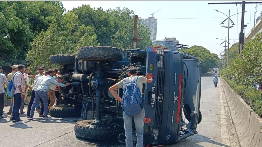 Pimpri: जुन्या पुणे-मुंबई महामार्गावर मोरवाडीत समतल विलगकामध्ये ( ग्रेड सेपरेटर) हवाई दलाचा टेम्पो उलटला. दुचाकीस्वाराला वाचविताना टेम्पो उलटल्याचे सांगितले जात आहे. दरम्यान, यामुळे मोठी वाहतूक कोंडी झाली असून वाहनांच्या लांबच लांब रांगा लागल्या आहेत. ही घटना मंगळवारी दुपारी दोनच्या सुमारास घडली.