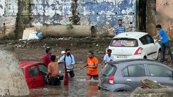 शहरात कालपासून मुसळधार पाऊस सुरु आहे. नदीपात्र प्रवाही झाले आहे. खडकवासला धरणातून ३५ हजार क्युसेकने विसर्ग सुरू असल्याने पाणी वाहण्याचा वेग वाढला आहे. अशातच मध्यरात्री नदीत वाहून जाणाऱ्या गाड्या वाचवण्यासाठी पुणेकरांची धडपड सुरू होती. जिव धोक्यात घालून गाड्या नदीतून बाहेर काढण्याचे प्रयत्न केले जात होते.