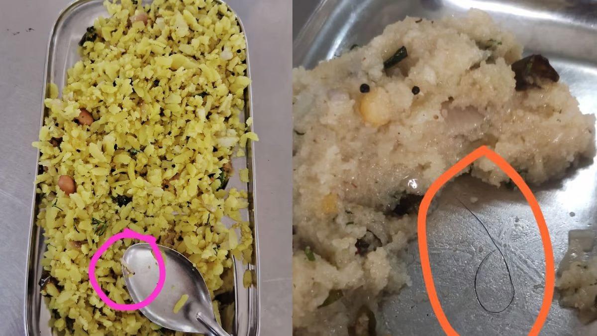 मिळालेल्या माहितीनुसार, पुणे विद्यापीठाच्या भोजनगृहातील विद्यार्थ्यांच्या पोह्यामध्ये अळी आणि उपीटमध्ये केस आढळल्याचा किळसवाणा प्रकार समोर आळा आहे. विद्यार्थी भोजन करत असलेल्या मेसमध्ये प्रकार झाला आहे. सकाळी न्याहारीसाठी तयार केलेल्या पोह्यामध्ये अळी आढळून आली तर उपीटमध्ये केस आढळला आहे. या पदार्थांचे फोटो सोशल मीडियावर व्हायरल झाले आहेत. सोशल मीडियावरही नेटकऱ्यांकडून संताप व्यक्त केला जात आहे.
