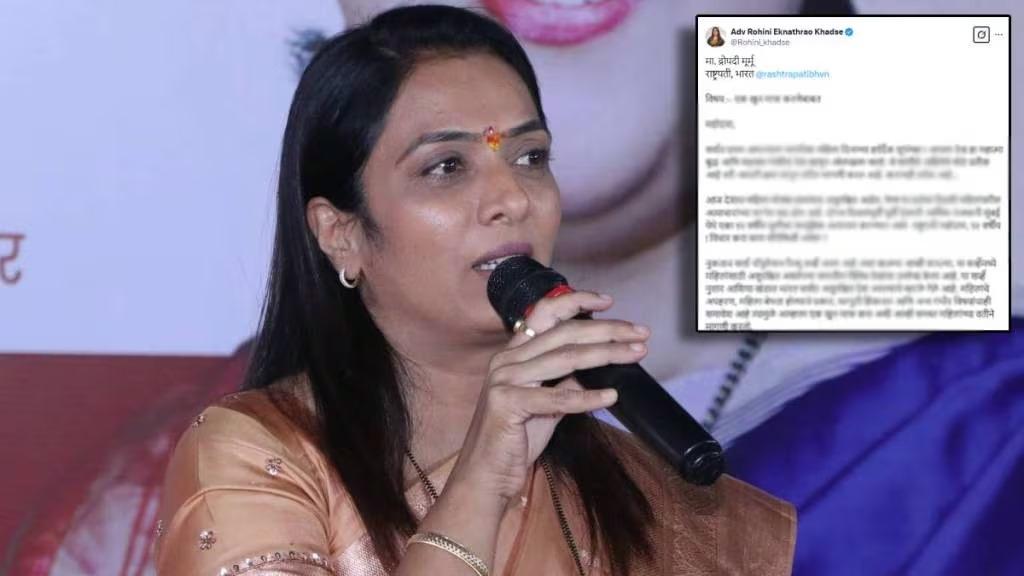 “आज देशात महिला मोठ्या प्रमाणात असुरक्षित आहेत. येणाऱ्या प्रत्येक दिवशी महिलांवरील अत्याचारांच्या घटनेत वाढ होत आहे. दोनच दिवसांपूर्वी देशाची आर्थिक राजधानी मुंबई येथे एका १२ वर्षीय मुलीवर सामूहिक अत्याचार करण्यात आले. राष्ट्रपती महोदया, १२ वर्षीय! विचार करा काय परिस्थिती असेल? नुकताच वर्ल्ड पॉपुलेशन रिव्यू सर्व्हे आला आहे अशा बातम्या आम्ही वाचल्या. या सर्व्हेमध्ये महिलांसाठी असुरक्षित असलेल्या जगातील विविध देशांचा उल्लेख केला आहे. या सर्व्हेनुसार आशिया खंडात भारत सर्वात असुरक्षित देश असल्याचे म्हटले गेले आहे. महिलांचे अपहरण, महिला बेपत्ता होण्याचे प्रकार, घरगुती हिंसाचार आणि अन्य गंभीर विषयांचाही समावेश आहे त्यामुळे आम्हाला एक खून माफ करा अशी आम्ही समस्त महिलांच्या वतीने मागणी करतो”, असं रोहिणी खडसे म्हणाल्या.