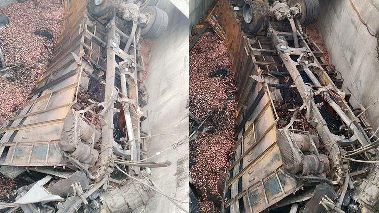 अशातच शिर्डीवरून नागपूरकडे कांदा घेऊन जाणाऱ्या ट्रकचा समृद्धी महामार्गावर अपघात झाला आहे. कांद्याचा ट्रक पुलावरून खाली कोसळून आग लागल्याने दोन जण जागीच ठार झाल्याची घटना घडली आहे.