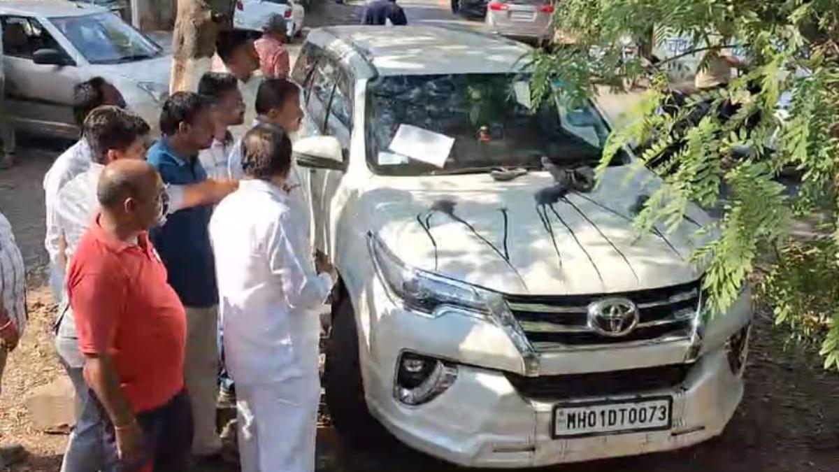 Sangli Constituency : ओबीसी बहुजन पार्टीचे सांगली लोकसभेचे उमेदवार प्रकाश अण्णा शेंडगे यांच्या गाडीला अज्ञातांकडून चपलांचा हार घालण्यात आला आहे. तसेच गाडीवर शाई फेकण्यात आली आहे. गाडीच्या बोनेटवर काळी शाई फेकली असून पुढे चपलांचा हार घालण्यात आलेला आहे.