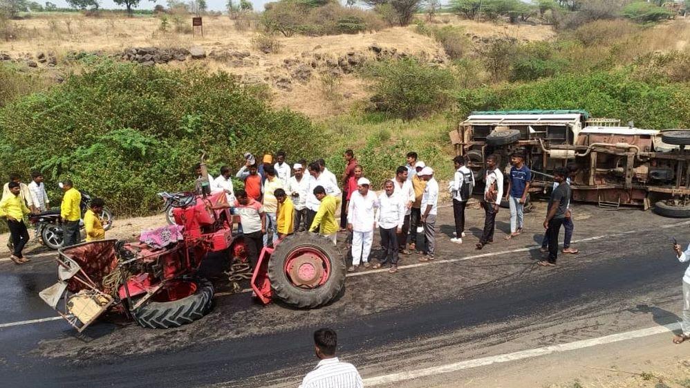 न्हावरे - तळेगाव ढमढेरे रस्त्यावरील दहीवडी घाटात तळेगाव ढमढेरेच्या दिशेने येणारे तसेच भाविक बसलेले पिकअप आणि न्हावरेच्या दिशेकडून येणारा ट्रँक्टर यांच्यात समोरासमोर धडक झाली. ट्रँक्टर चालक चुकीच्या दिशेने वाहन चालवत असल्याने हा अपघात झाला. या अपघातात पिकअप गाडी पलटी झाली असून ट्रँक्टरचे पाठीमागची चाके तुटून बाजुला पडली. तसेच या भीषण अपघातात दोन्ही वाहनाचे मोठ्या प्रमाणात नुकसान झाले आहे. अपघात झाल्यांनतर ट्रँक्टर चालक घटनास्थळावरून फरार झाला आहे.