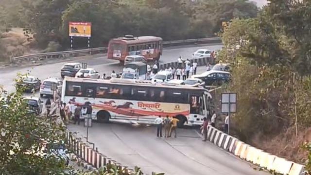 Shivshahi Bus Accident : मुंबई पुणे एक्सप्रेस वे चालकाचे नियंत्रण सुटल्याने शिवशाही बसचा अपघात झाला असून बस रस्त्यात अडकल्यामुळे तीनही लेन बंद झाल्या होत्या. खोपोली हद्दीतील बोर घाटात हा अपघात झाला. सुदैवाने अपघातामध्ये कोणतीही हानी झालेली नाही. बस अलिबागहून स्वारगेट जात होती. तब्बल तासभर वाहतूक वाहतूक ठप्प झाली होती. बस बाजूला काढल्यानंतर वाहतूक पूर्ववत सुरू झाली आहे.