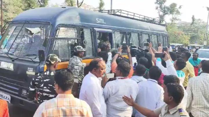 Solapur News : पालकमंत्री चंद्रकांत पाटील हे जिल्हा नियोजन बैठकीसाठी सोलापूर दौऱ्यावर आहेत. यावेळी चंद्रकांत दादा पाटील यांच्या ताफ्या समोर एका आंदोलकाने गावातील भ्रष्टाचारी अधिकाऱ्यांची तक्रार करत पेटवून घेण्याचा प्रयत्न केला. यामुळे परिसरात एकच गोंधळ झाल्याचे पाहायला मिळाले. पोलिसांनी या आंदोलक तरुणाला ताब्यात घेतले.