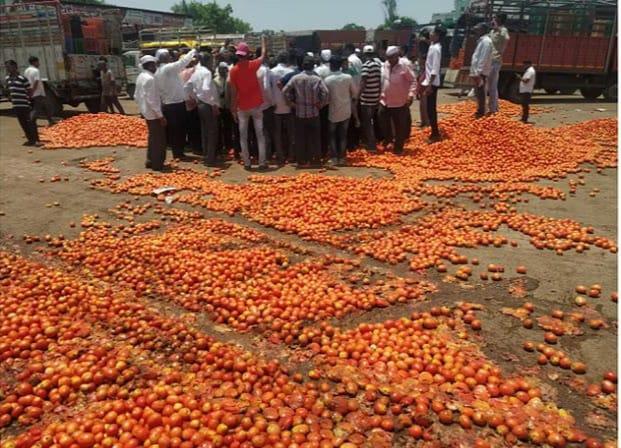 दत्ता शिंगोटे, योगेश घोलप (टोमॅटो व्यापारी) - राज्यातील टोमॅटोची मुख्य बाजारपेठ असलेल्या नाशिक बाजार समितीत सुद्धा चार दिवसापूर्वी शेतकऱ्यांनी उपबजार आवारात टोमॅटो क्रेट टाकून दिले आहेत. आवक वाढल्याने व मागणी नसल्यामुळे राज्यात टोमॅटोचे भाव कोसळले आहेत. तापमान वाढीमुळे फळावर तिरंगा रोगाचा प्रादुर्भाव झाला असून, लाल टोमॅटो खरेदी नंतर चार ते पाच तासात टोमॅटो फळातून पाणी सुटत आहे. मागील आठ दिवसात व्यापाऱ्यांना लाखो रुपयांचा तोटा सहन करावा लागला आहे. कर्ज काढून शेतकऱ्यांचे पैसे द्यावे लागले आहेत. व्यापाऱ्याची बाजू कोणी समजून घेत नाही.