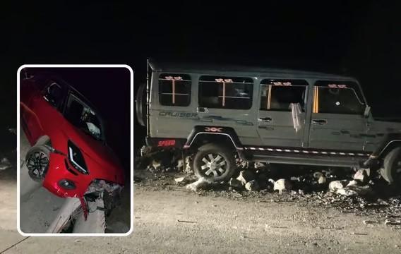 मिळालेल्या माहितीनुसार, रिसोडवरून हिंगोलीच्या दिशेने जात असलेल्या एका कारवरील चालकाचे नियंत्रण सुटले. त्यामुळे ही कार रस्त्याच्या कडेला असलेल्या नालीमध्ये पडली. सुदैवाने गाडीतील एअर बॅग उघडल्याने कारमधील तीन जन किरकोळ जखमी झाले. तर याच ठिकाणी दुसरा अपघात देखील झाला. अवघ्या ७ मिनिटांनंतर रिसोडकडे येत असलेली क्रुझर ही रस्त्याचा अंदाज न आल्याने थेट मातीच्या ढिगाऱ्यावर चढली.